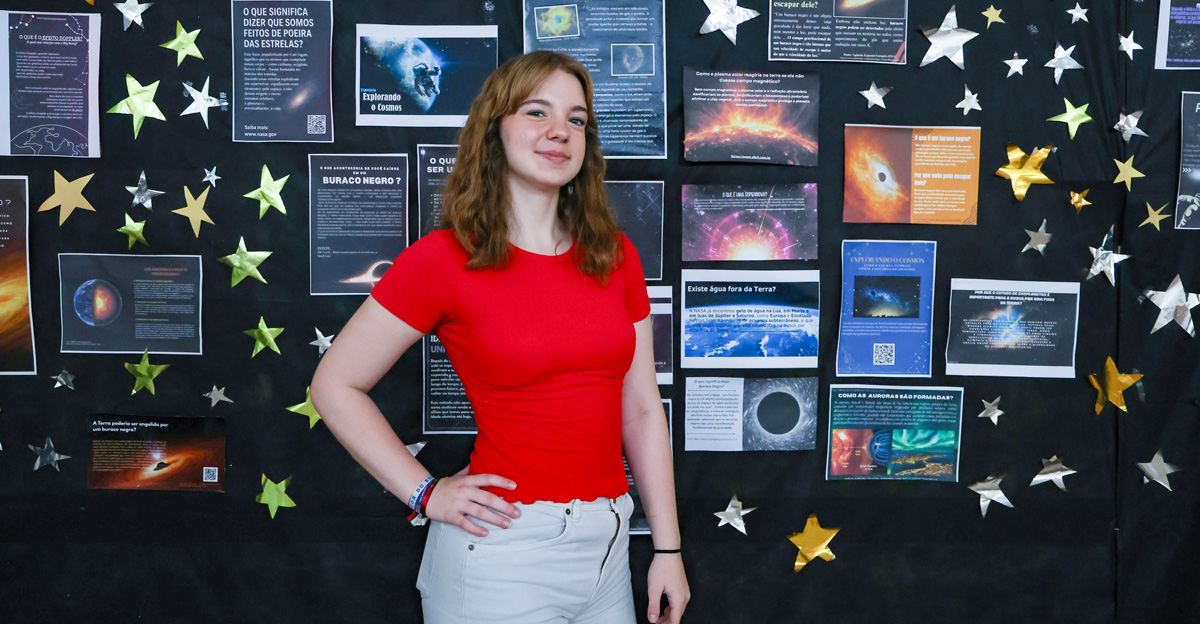 – Já o 7º ano exibiu o Ecotrilha em Foco, que tem como objetivo desenvolver nos estudantes um olhar responsável diante dos problemas ambientais e trabalhar a conscientização para o cuidado com a natureza. Cada turma do 7º ano fez uma trilha em Florianópolis, identificando e tirando fotos da fauna e flora local, culminando com um leilão das melhores fotografias.