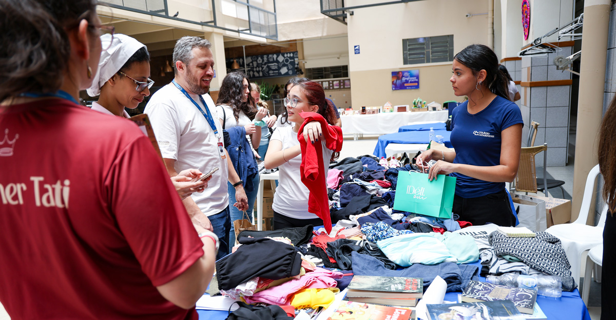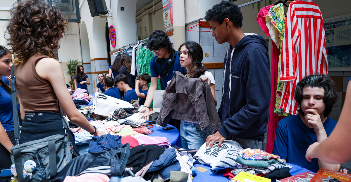– O 9º ano organizou o Brechó solidário “Amor entrelinhas” no Pátio Interno, que vendeu peças de roupas para reverter a arrecadação a uma entidade beneficente.