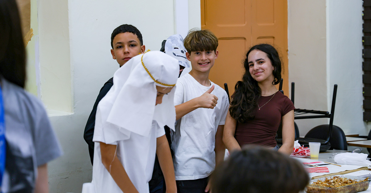 – O 6º ano apresentou o projeto Clube do Faraó, que proporcionou momentos lúdicos de revisão sobre as civilizações do Mundo Antigo. Cada turma ofereceu até um petisco para que os visitantes mergulhassem no sabor de várias culturas.