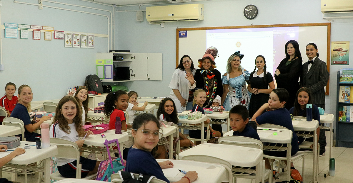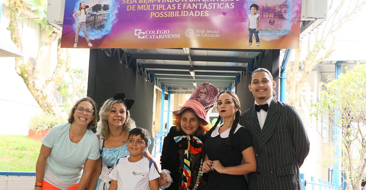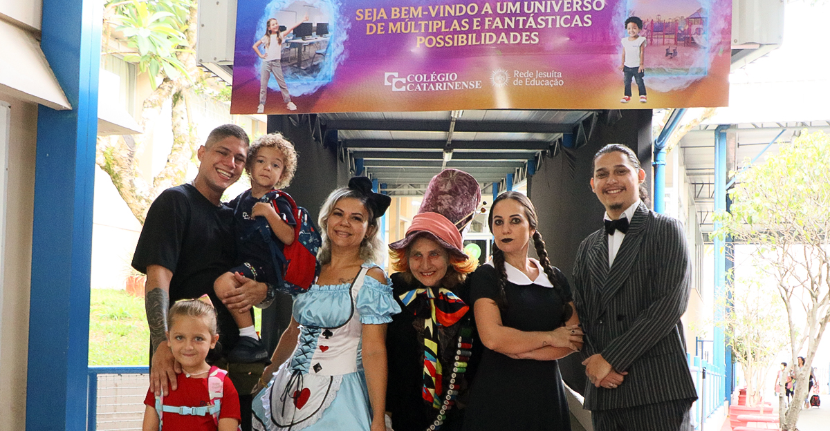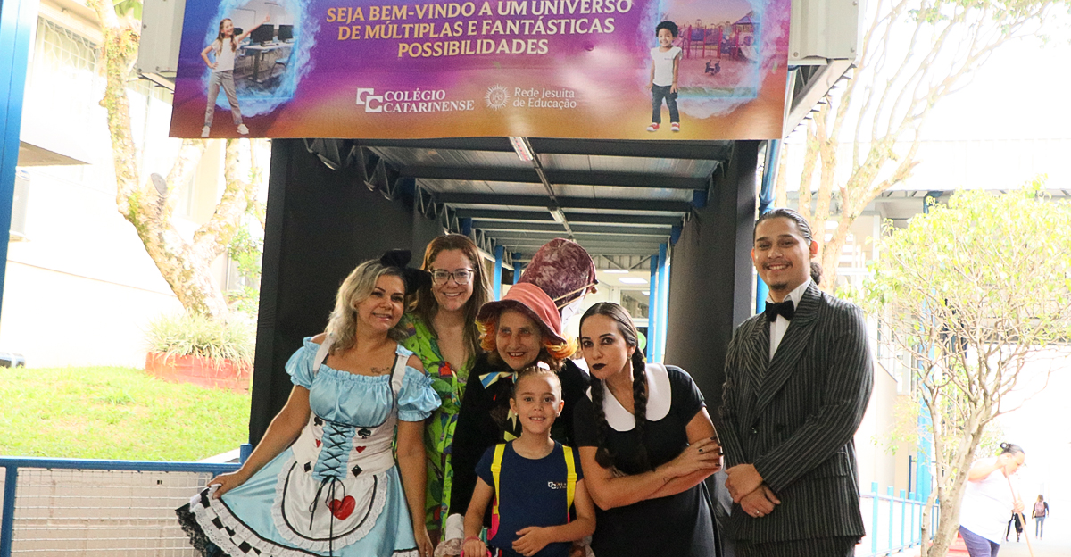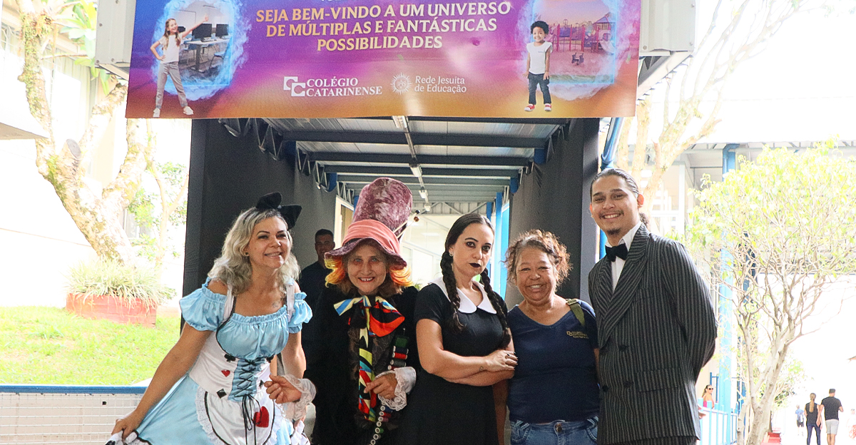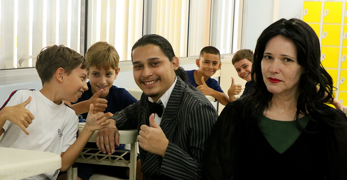 Os estudantes foram recepcionados pelos personagens da Família Adams, entre eles, Wandinha e seus pais, Gomez e Mortícia, além de Alice (do País das Maravilhas) e do Chapeleiro Maluco, que distribuíram um delicioso e refrescante picolé de frutas para todos.
