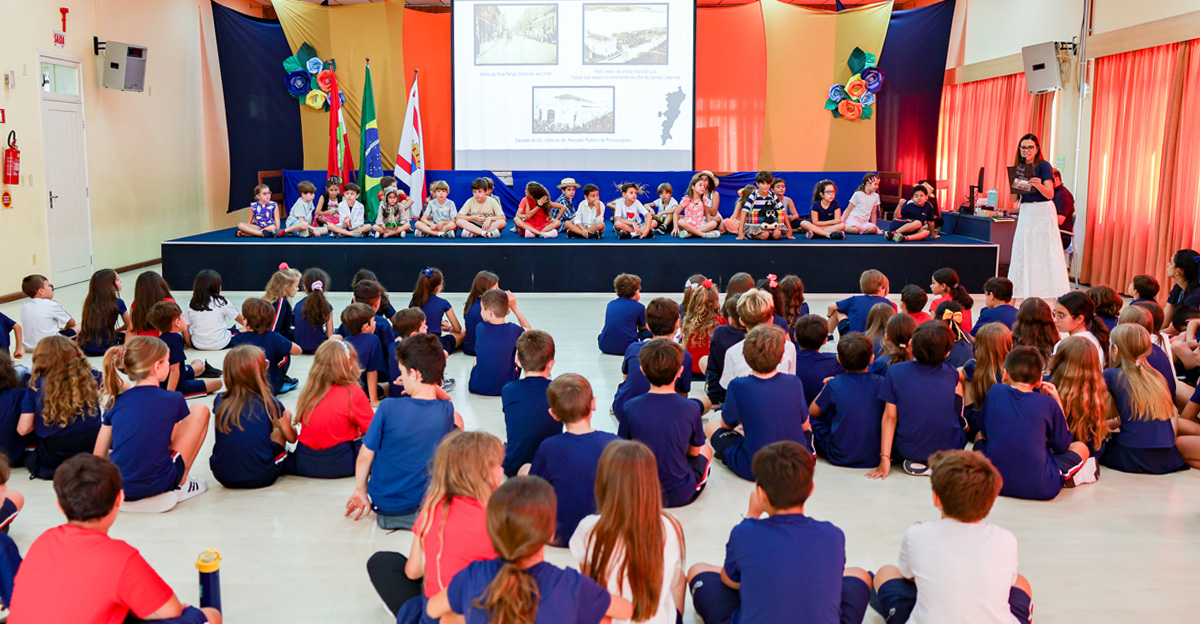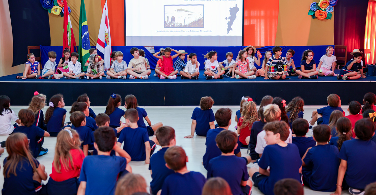 Os alunos do 3º ano do Ensino Fundamental do Colégio Catarinense realizaram uma homenagem a Florianópolis, no Auditório da Unidade de Ensino I, na última sexta-feira, dia 20 de março. O evento foi dividido em quatro horários para atender a todas as turmas do período matutino e vespertino.
