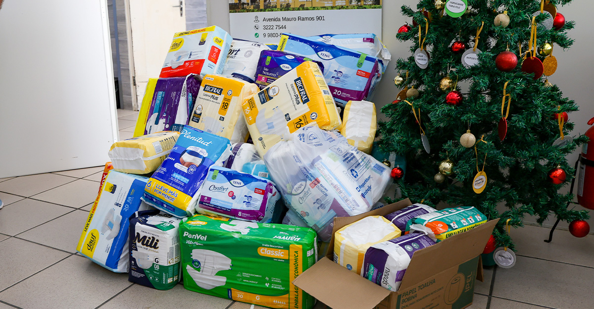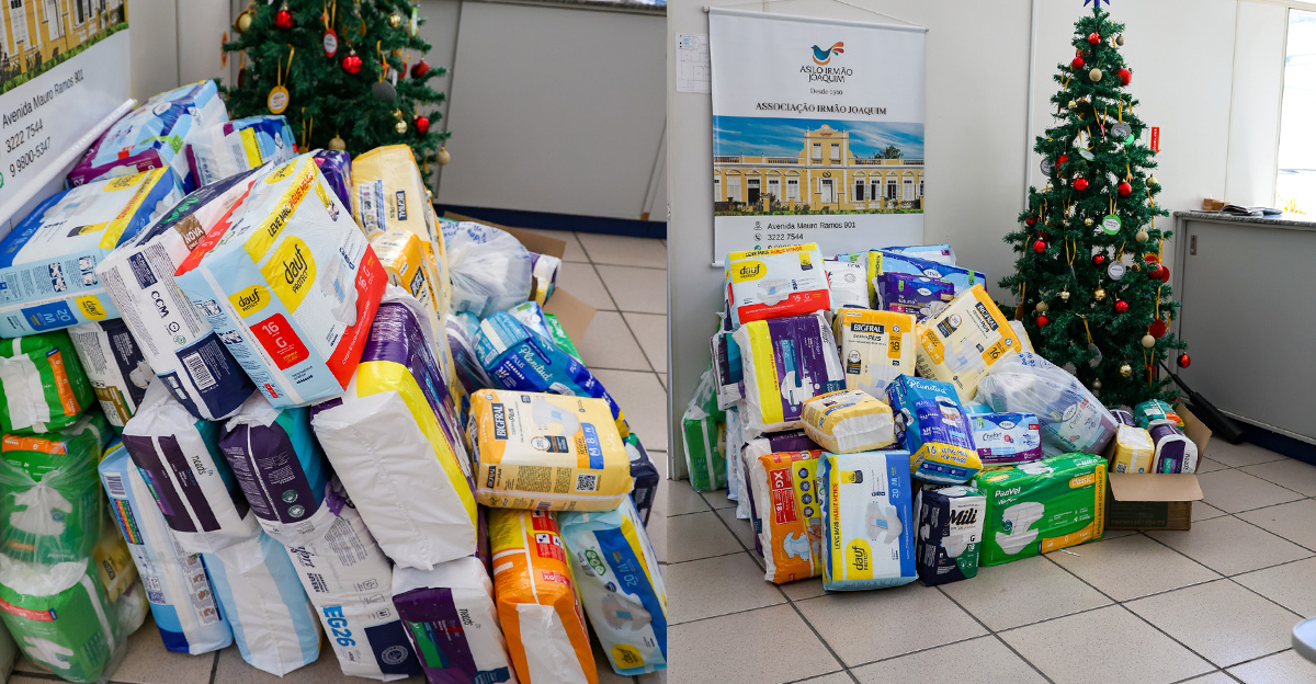 O Colégio Catarinense realizou uma significativa entrega de solidariedade na manhã de quarta-feira, dia 19 de novembro, no Asilo Irmão Joaquim, no Centro de Florianópolis. A doação foi um gesto concreto da turma de formandos de 2000, que se reuniu no sábado anterior, dia 15 de novembro, para celebrar 25 anos de formatura em um almoço de reencontro com cerca de 100 antigos alunos e seus familiares. A campanha resultou na arrecadação de 74 pacotes de fraldas geriátricas de diversos tamanhos, somando um total de 624 unidades.