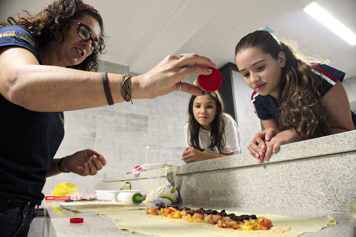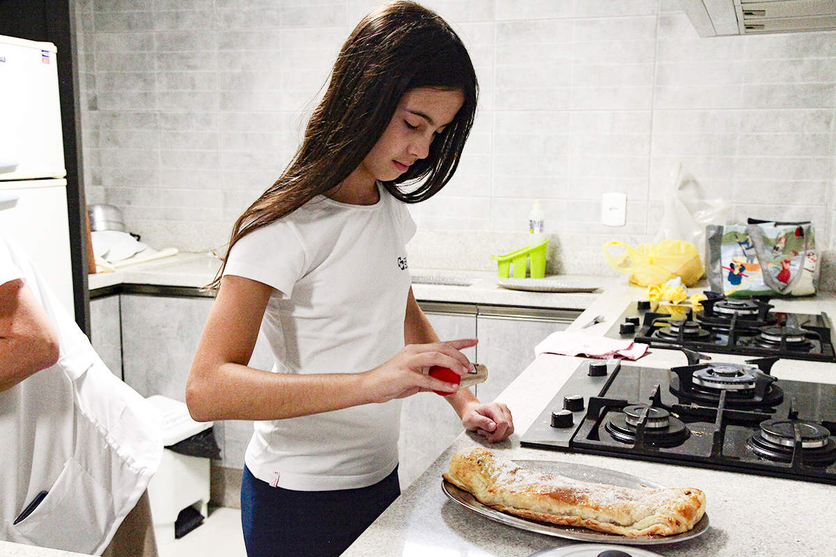 | 10 de abril | Das 15h09min as 16h45min | Cozinha | Culinária austríaca – “Apfelstrudel” Uma das mais populares sobremesas austríacas é também a receita preferida pelos alunos de Alemão. A turma do Ensino Fundamental II da Oficina de Alemão vai pôr a mão na massa e fazer um delicioso Apfelstrudel. P.S: Apenas para alunos das oficinas. |