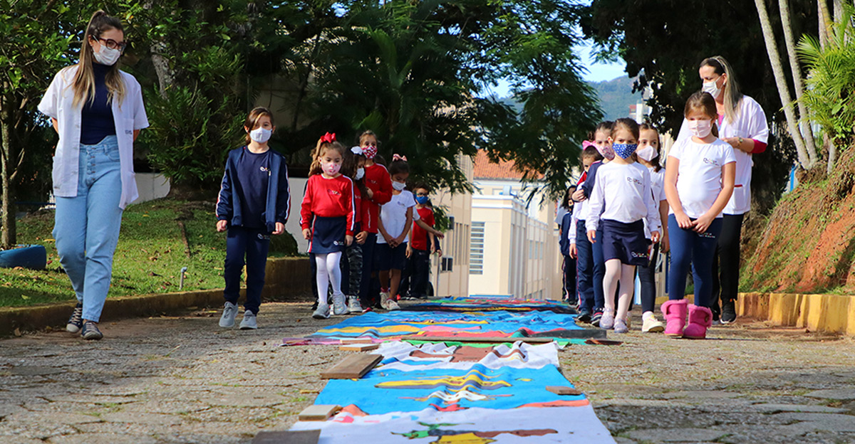 No Brasil, essa data é comemorada com a confecção dos tradicionais tapetes, uma manifestação artística popular que demonstra a devoção e o respeito ao Corpo e Sangue de Jesus.