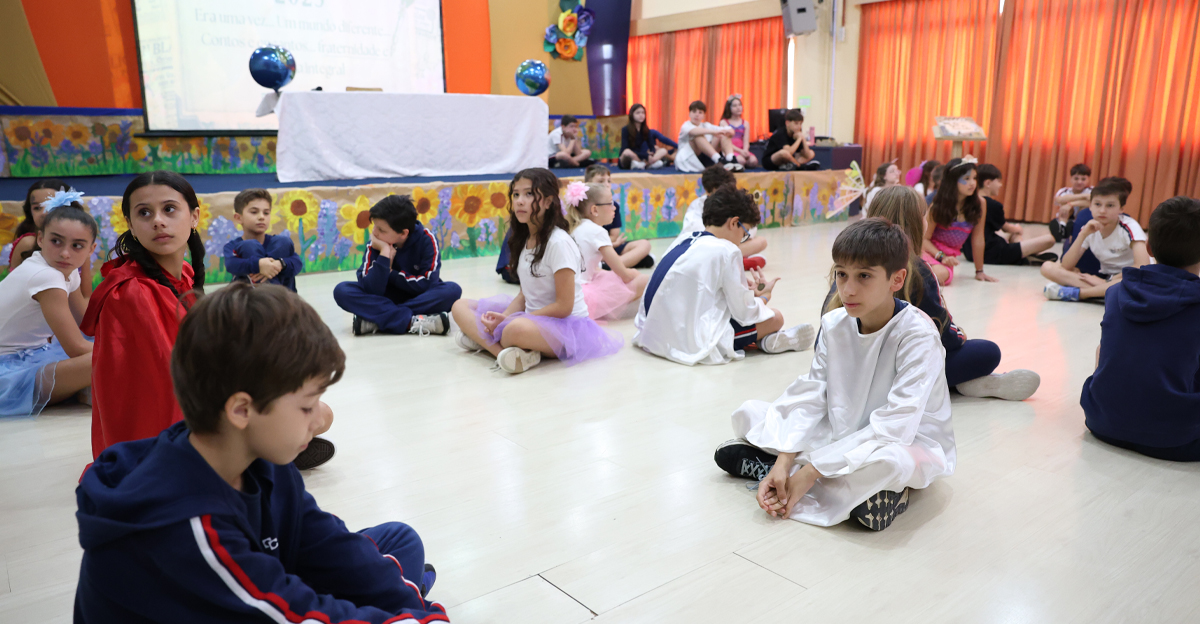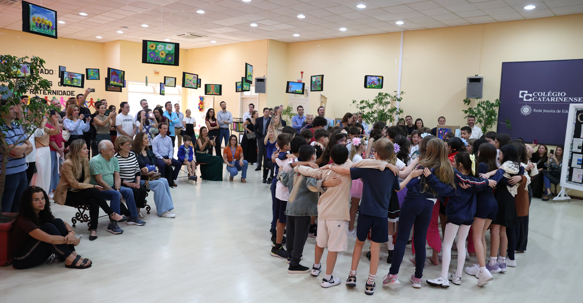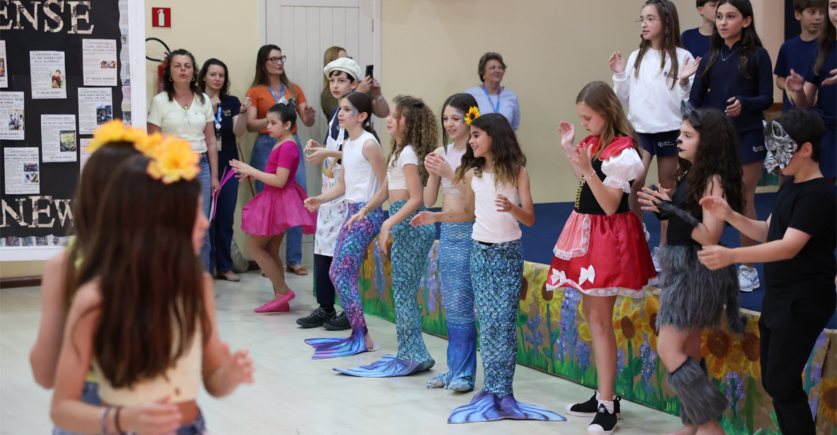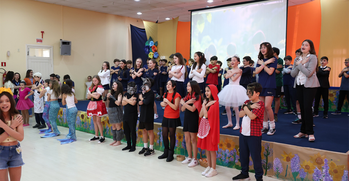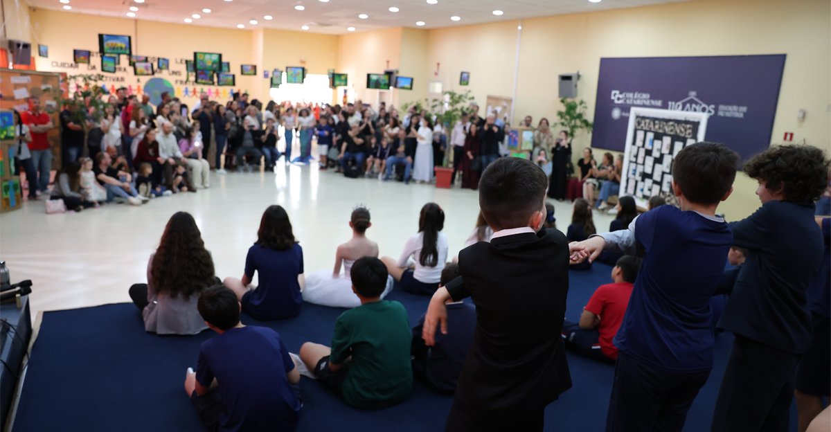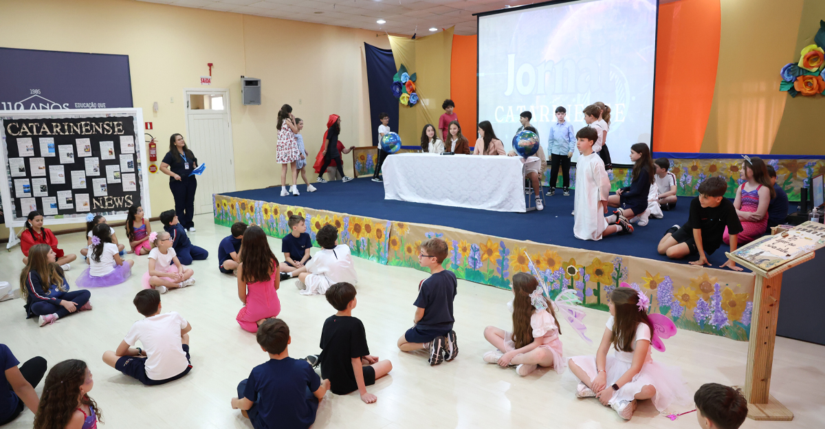 O Colégio Catarinense realizou, nesta quarta-feira, dia 12 de novembro, a Socialização de Saberes das turmas do 5º ano. O evento ocorreu em dois momentos distintos, no Auditório Padre Kuno Paulo Rhoden, na Unidade de Ensino I, e celebrou as aprendizagens do ano letivo de 2025 sob o inspirador tema: “Era uma vez… um mundo diferente… contos e encantos… fraternidade e ecologia integral”.