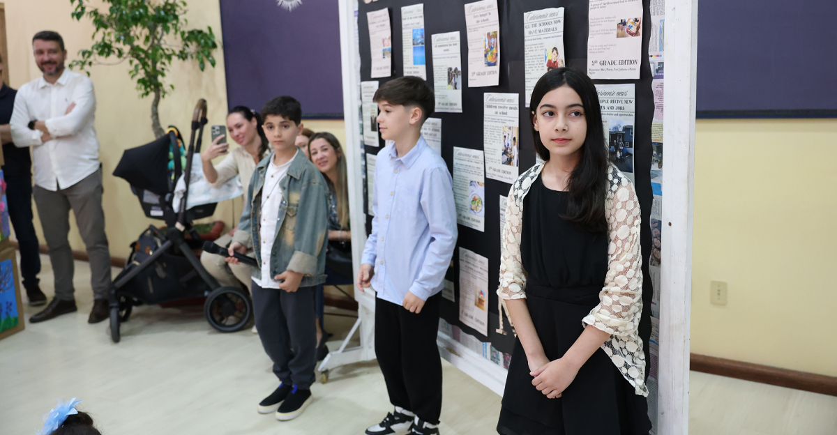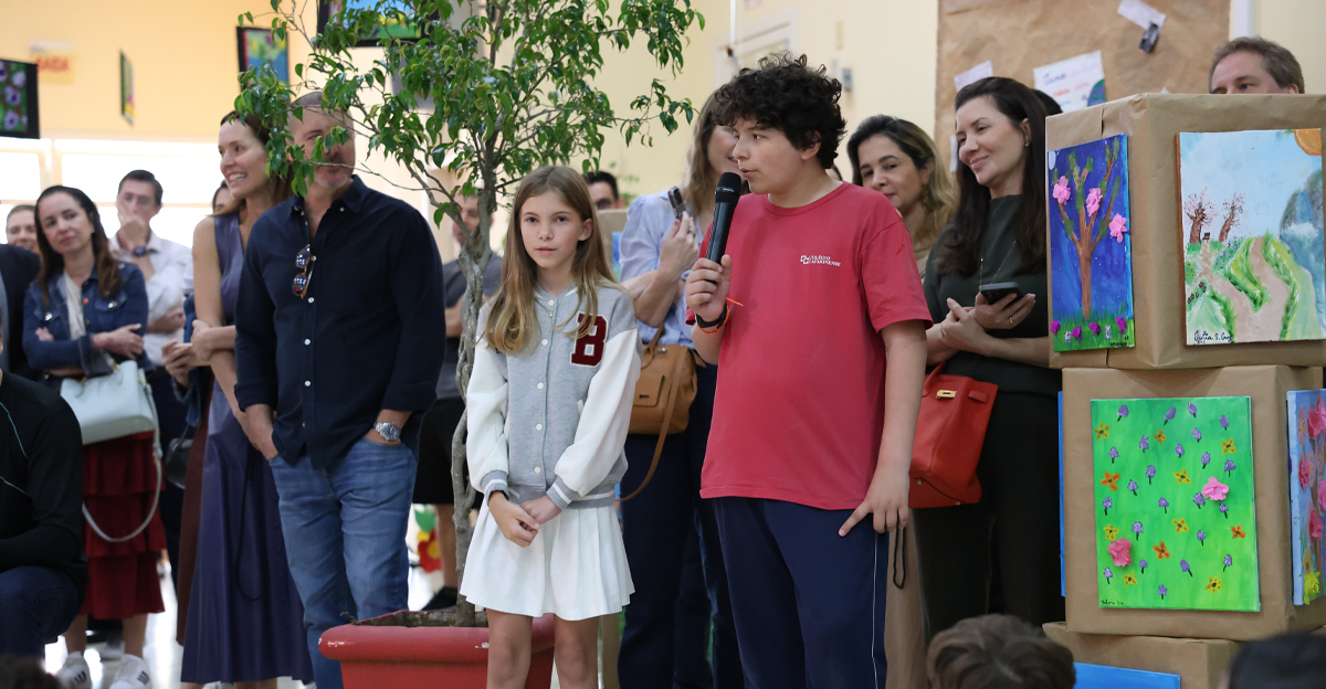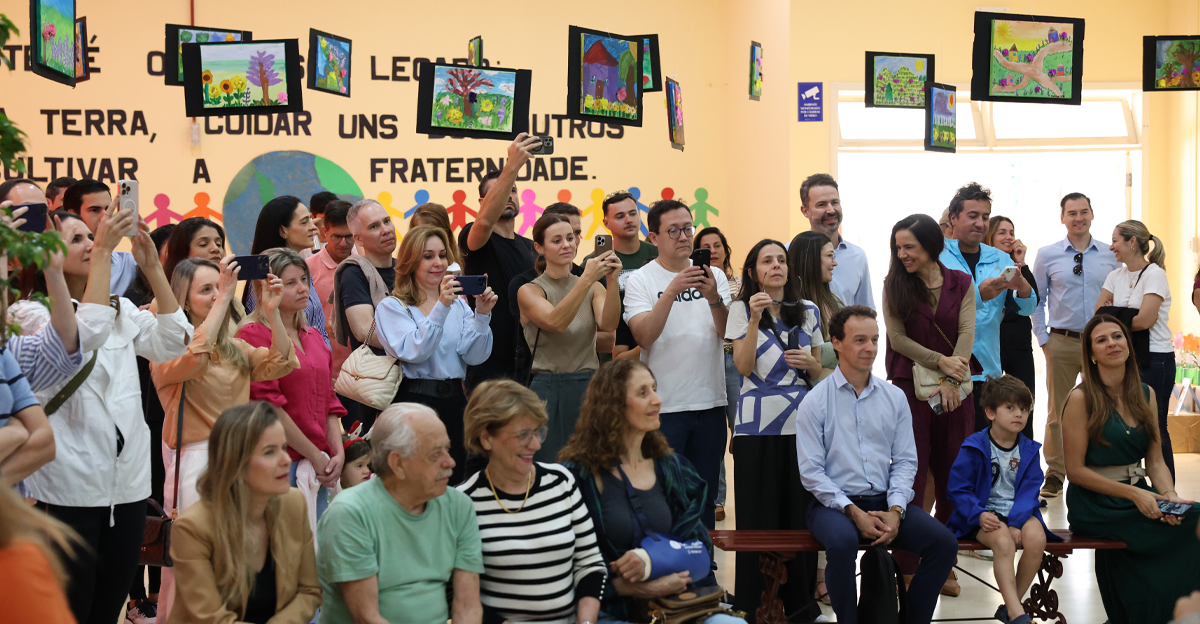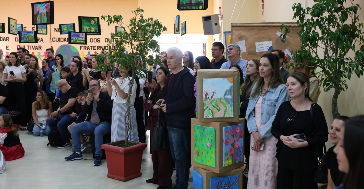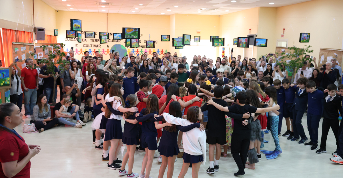 A jornada poética encerrou-se com a declamação de um poema pelos alunos, utilizando contos de fadas para ilustrar a necessidade de ações sustentáveis e de paz. Em um coro forte e animado, a turma finalizou com a mensagem: “Este é o nosso legado: cuidar da Terra, cuidar uns dos outros e cultivar a fraternidade.” Após o encerramento do telejornal e a música final, os pais e familiares foram convidados a apreciar os trabalhos desenvolvidos pelos estudantes ao longo do ano.