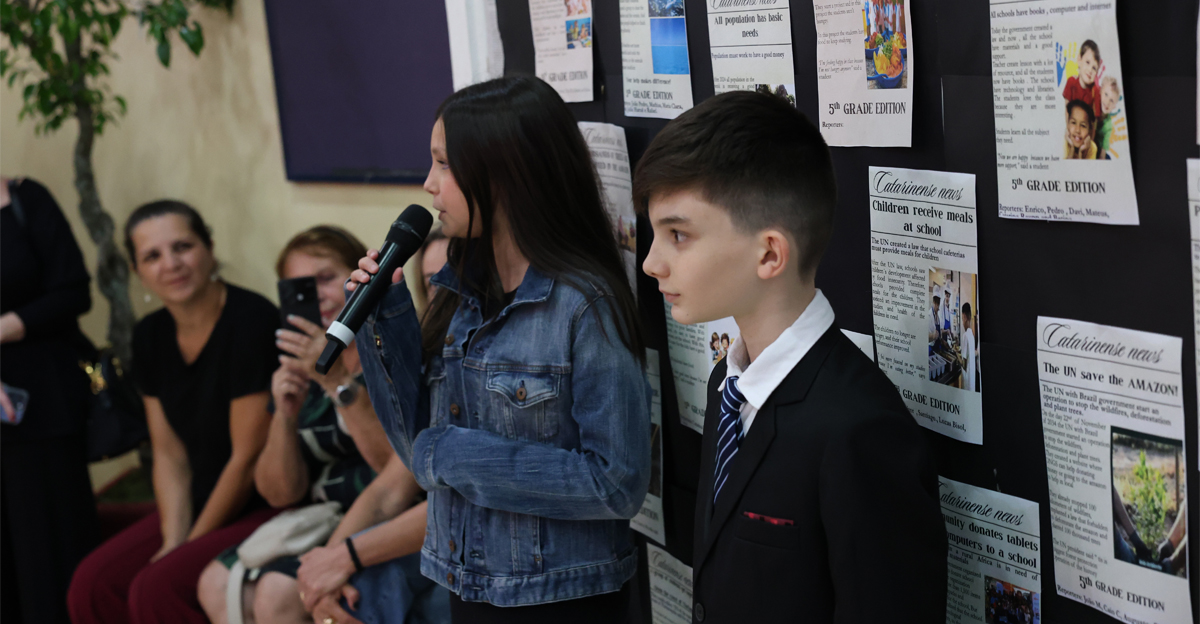 - País do Inglês e do Pensamento Computacional: nessa fronteira linguística e digital, os estudantes relataram a invenção de um “novo mundo” em um jornal bilíngue, onde “a fraternidade é notícia, e a ecologia integral é realidade”.
