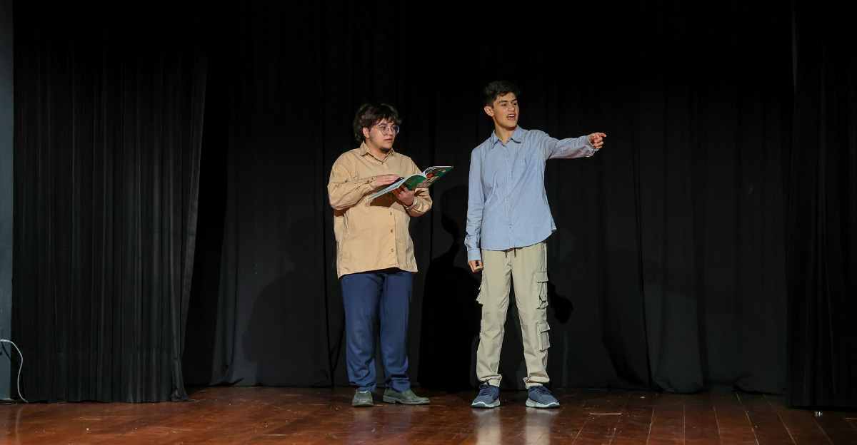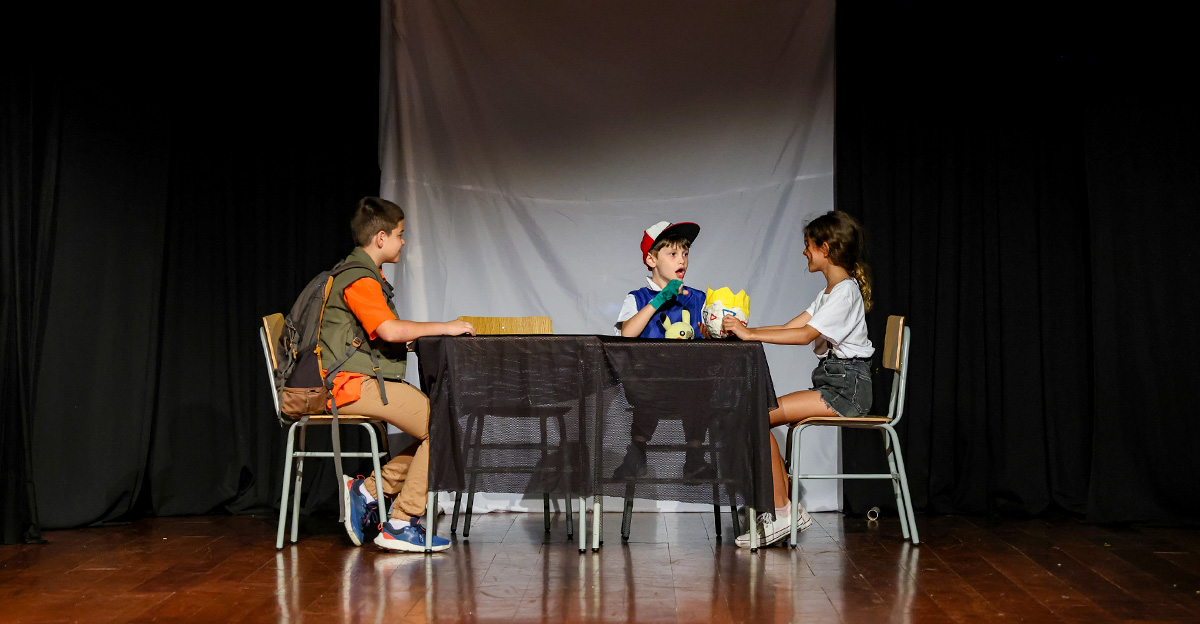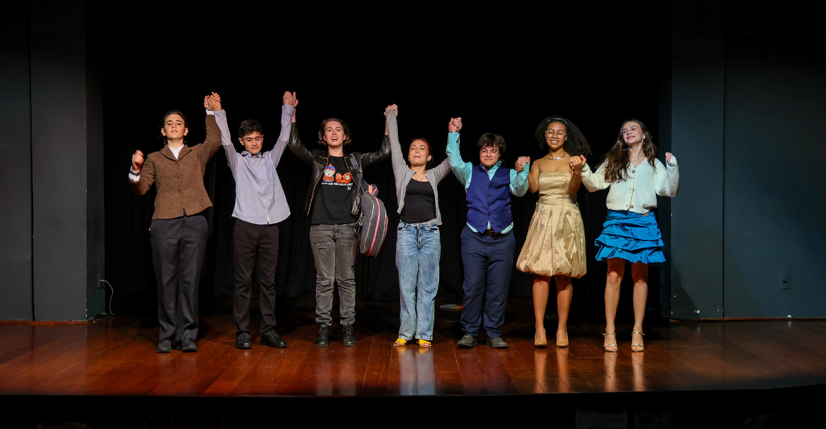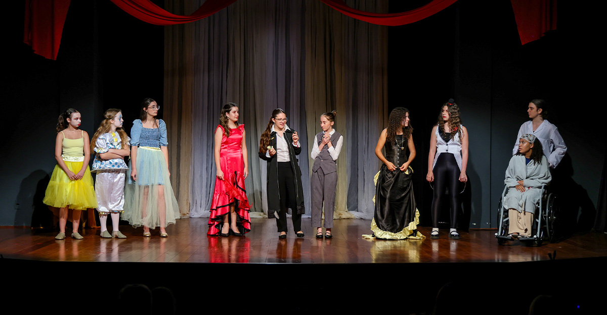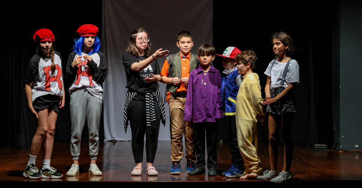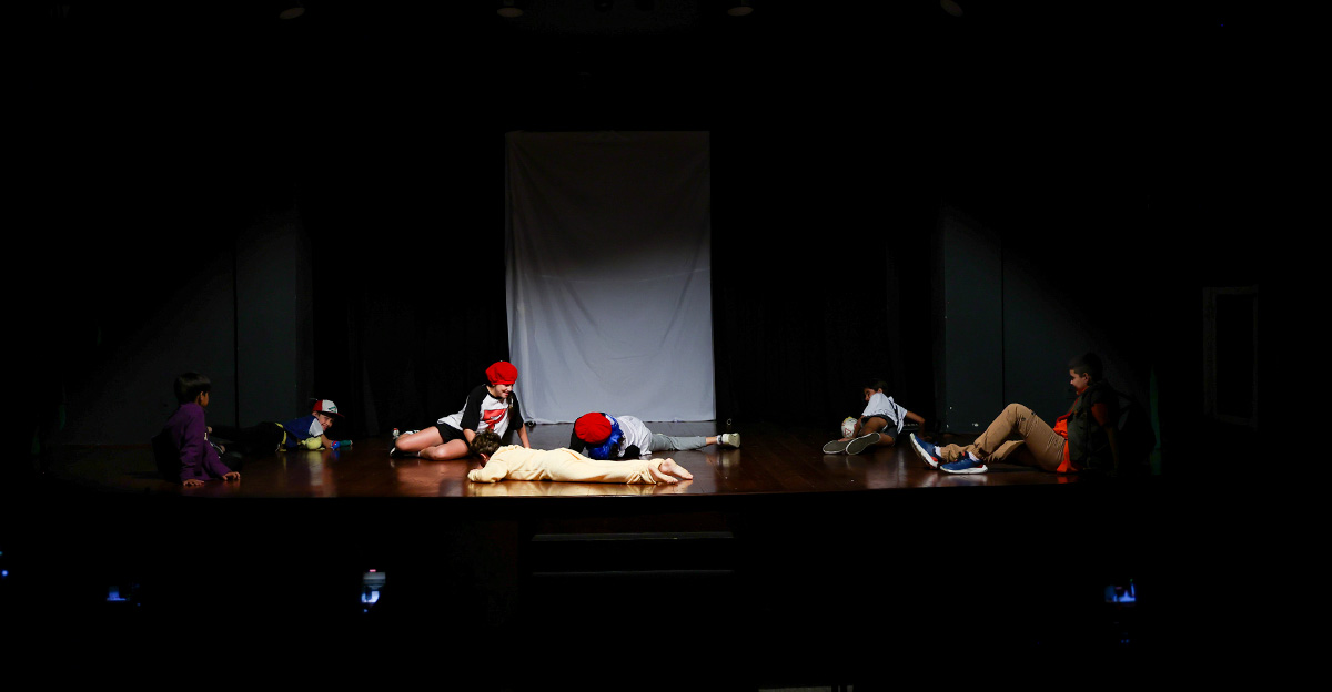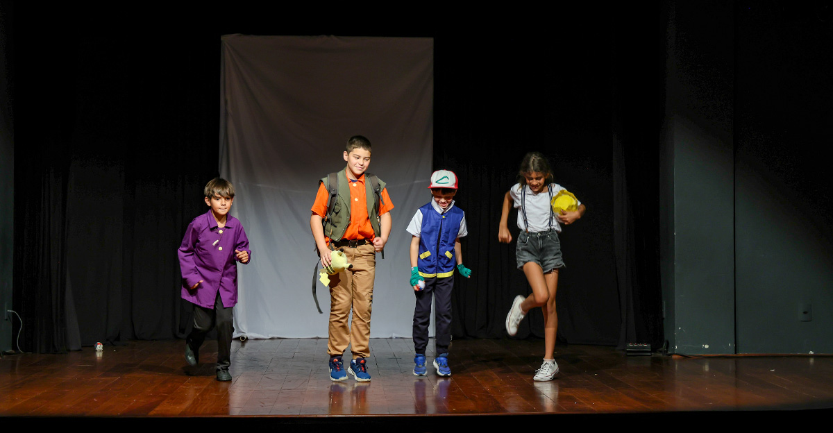 Como culminância desse percurso, cada turma apresentou no palco uma história criada pelas próprias crianças, que reimaginaram personagens, cenários e situações com base nas obras trabalhadas ao longo do semestre. As famílias acompanharam as apresentações com entusiasmo, reconhecendo o envolvimento e a evolução dos pequenos no processo de expressão oral, interpretação e ajuda mútua.