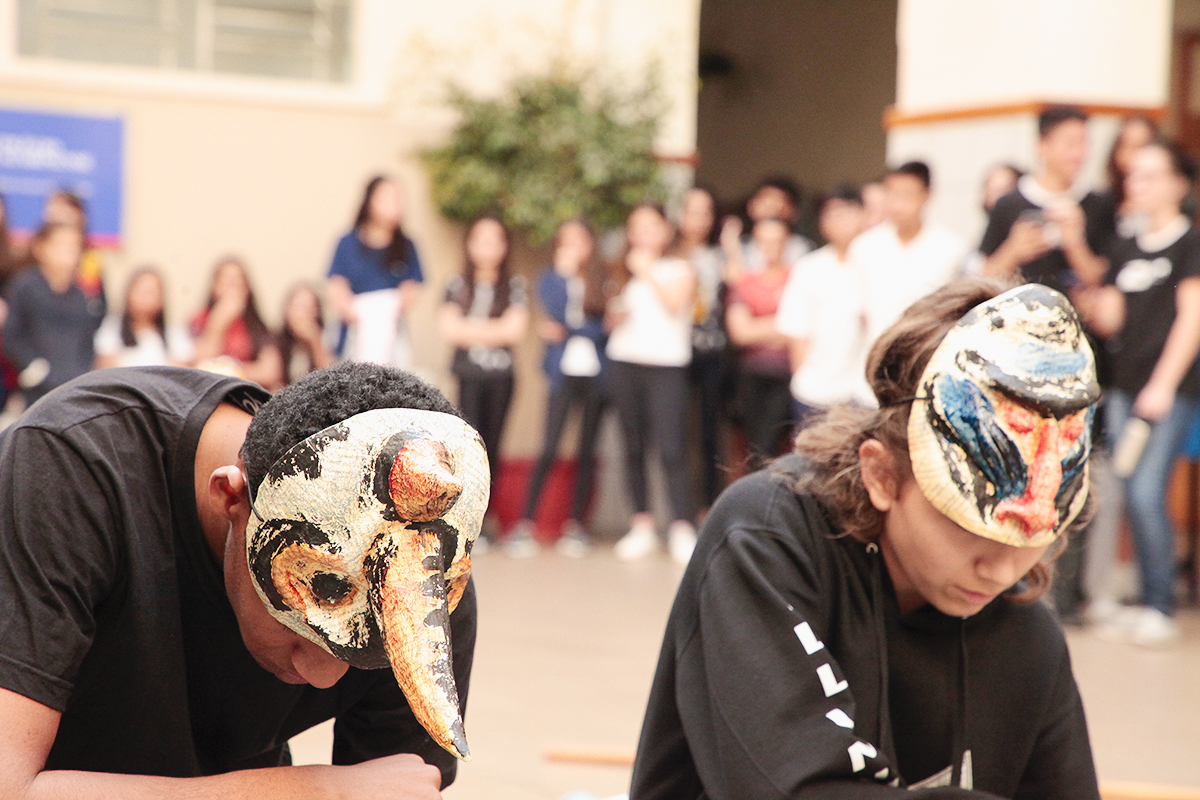 Para finalizar a semana intensa de atividades, o grupo NUCCA apresentou, nos intervalos entre as aulas dos períodos matutino e vespertino, um esquete teatral, em que um boneco gigante, confeccionado com material reciclável recolhido no Colégio, realiza uma ação para preservar a natureza, provocando, nos alunos, uma reflexão acerca do futuro de todos nós.