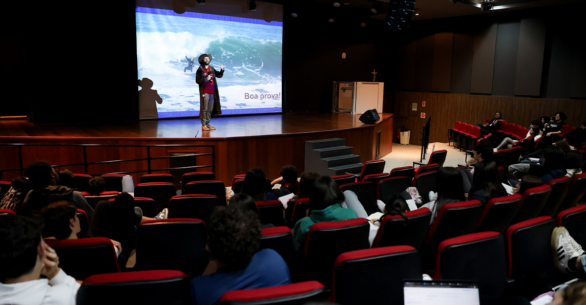 A iniciativa contemplou áreas cruciais da primeira etapa: Linguagens, Ciências Humanas e Redação. O evento aconteceu no Teatro Pe. João Alfredo Rohr, com uma programação dividida em três blocos de estudo, intercalados por surpresas e um lanche especial.
