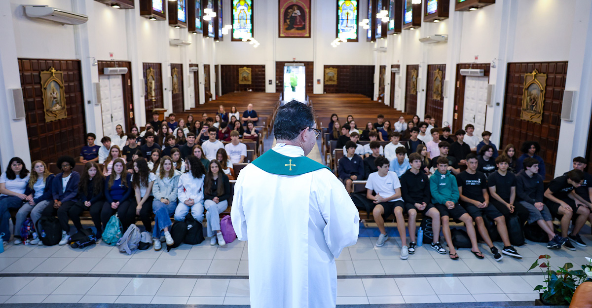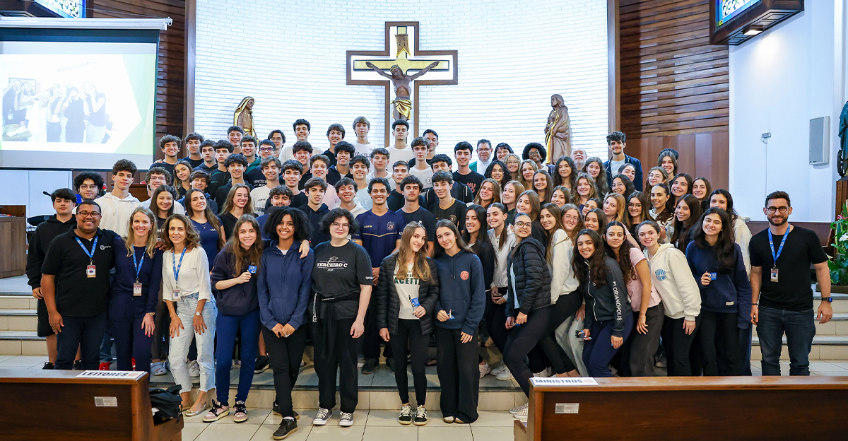 Após a jornada de estudos, os alunos foram convidados para um momento de fé e reflexão na Igreja Santa Catarina de Alexandria, onde receberam a bênção dos estudantes para a prova do ENEM 2025.