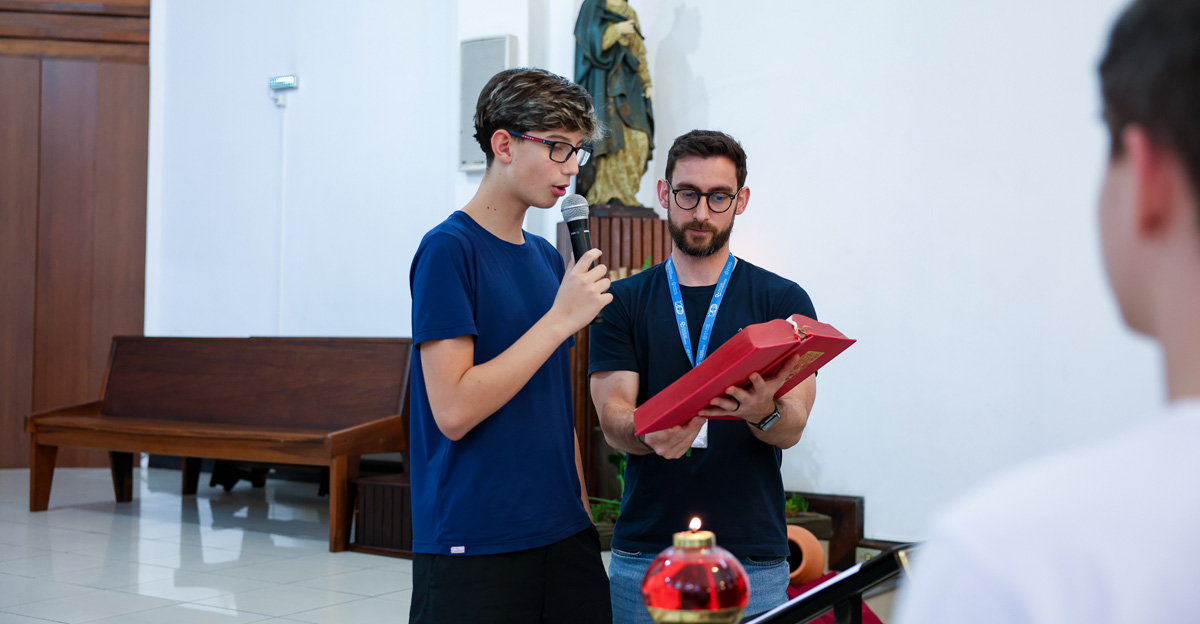 O Evangelho de Marcos (10,17-21) foi o ponto de partida para refletir sobre o reconhecimento do amor de Deus e o que nos cabe renunciar ou realizar para alcançar o fim para o qual fomos criados. À luz desse testemunho, os alunos foram convidados a rezar e depositar em pedaços de papel, num cesto aos pés da imagem de Santa Catarina, a motivação primeira de suas vidas hoje. O momento culminou com um breve silêncio, a reza do Pai-Nosso e a bênção final.