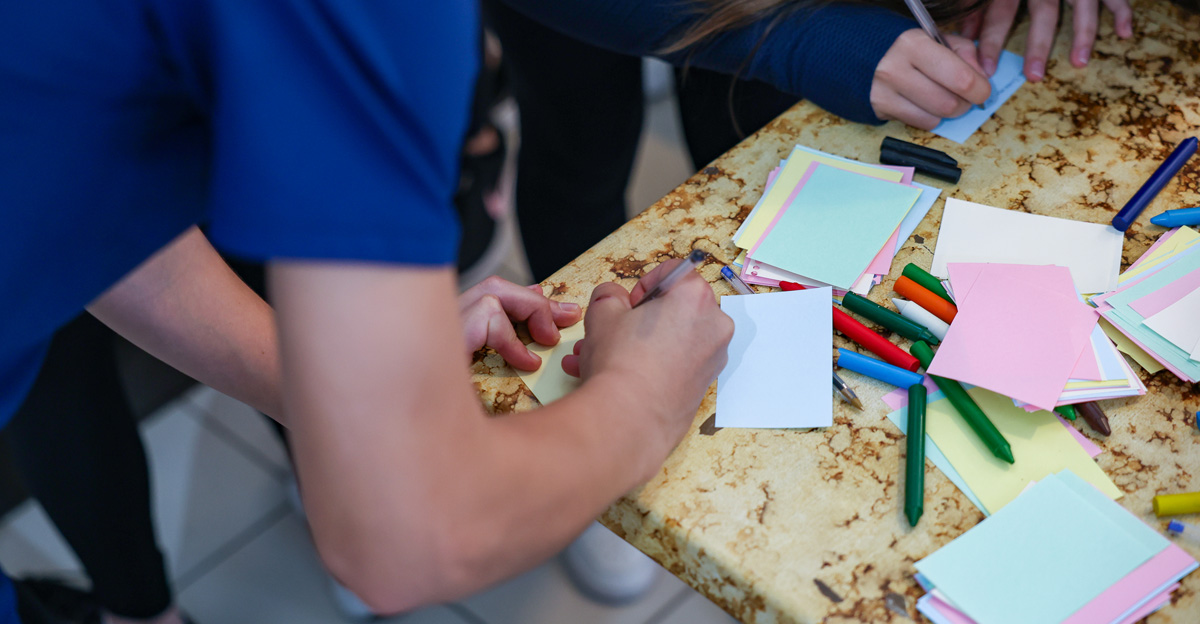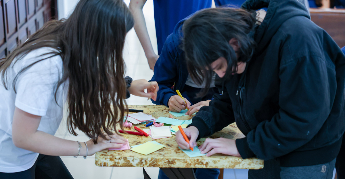 A equipe do SOREP iniciou o encontro com uma memória da vida de Santa Catarina, destacando sua coragem e determinação em reconhecer seu ideal de vida e a motivação por trás de suas escolhas. A partir disso, os estudantes participaram de uma dinâmica para refletir sobre como lidam com as circunstâncias da vida e a importância do autoconhecimento para reconhecer as próprias motivações.