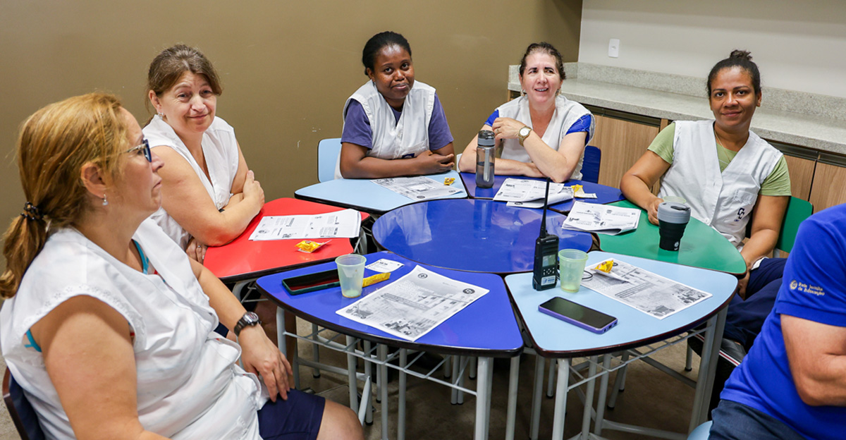 Ao longo do encontro, os participantes revisitaram práticas fundamentais para a rotina de trabalho, como a identificação dos diferentes tipos de EPIs e suas finalidades, a forma correta de utilização, os ajustes e limitações, além de orientações sobre conservação, higienização e substituição dos equipamentos. Também foram discutidos os principais riscos presentes nas atividades internas, as causas mais comuns de acidentes (incluindo atos inseguros, condições inadequadas e fatores pessoais ou psicológicos) e o fluxo adequado para comunicação de acidentes e incidentes dentro da instituição.