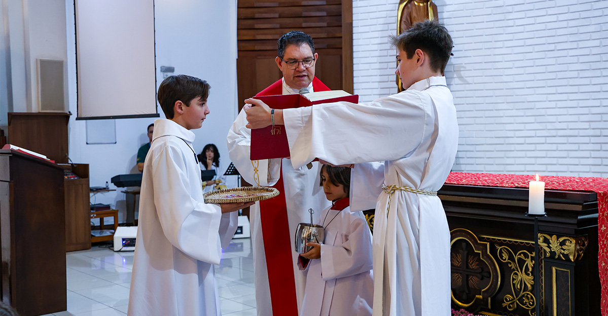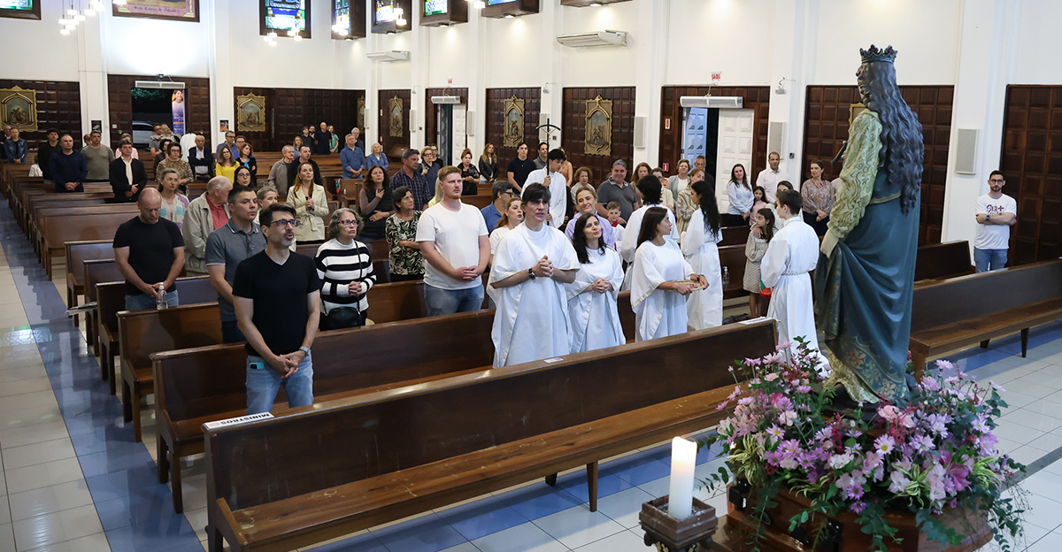 Ensino Fundamental II (6º ao 9º ano): entre os dias 10 e 14 de novembro, os alunos participaram de uma ação pedagógico-pastoral na Igreja, organizada pelo Serviço de Orientação Religiosa, Espiritual e Pastoral (SOREP). O encontro promoveu uma reflexão sobre a vida da padroeira, destacando sua coragem e a determinação em reconhecer seu ideal de vida. Utilizando o Evangelho de Marcos (10,17-21) como ponto de partida, os estudantes foram convidados a refletir sobre o amor de Deus e o que é necessário renunciar para alcançar o fim para o qual foram criados. O momento de oração culminou com a deposição, aos pés da imagem de Santa Catarina, das motivações de suas vidas, seguida da oração do Pai-Nosso e da bênção final.