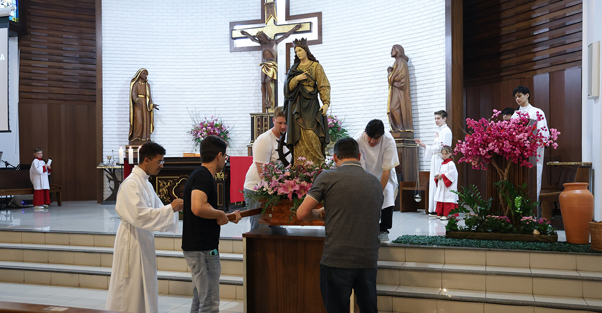 O Colégio Catarinense celebrou a memória de sua padroeira, Santa Catarina de Alexandria, com uma intensa programação que uniu fé, reflexão e importante gesto de solidariedade. As atividades incluíram celebrações litúrgicas, momentos pedagógico-pastorais nas unidades I e II, e culminam no evento beneficente da Massa Solidária.
