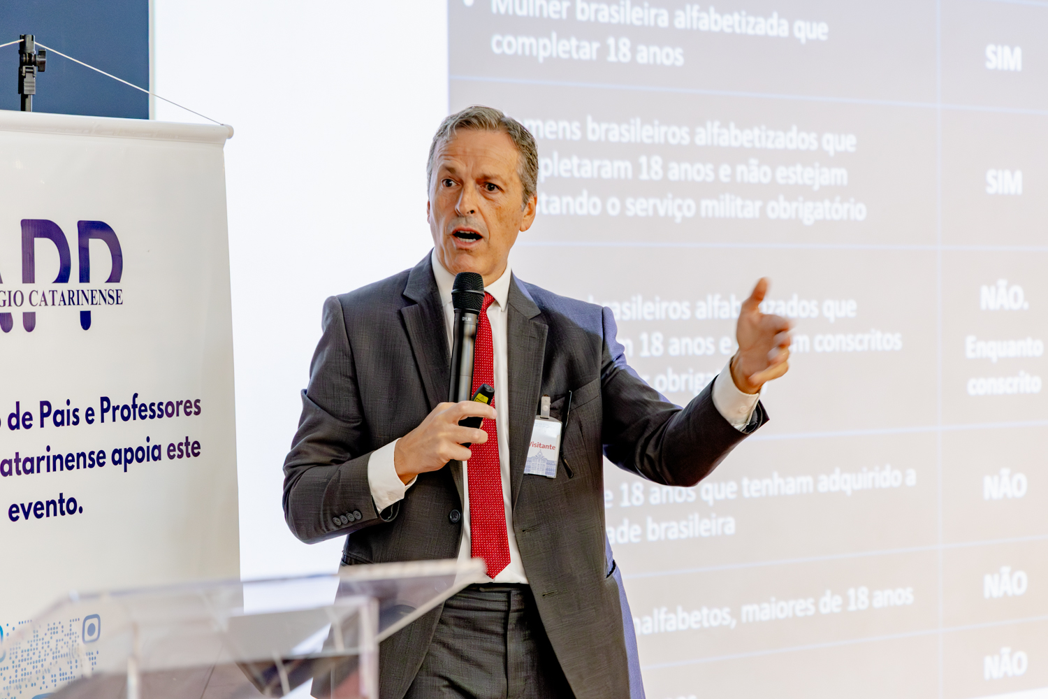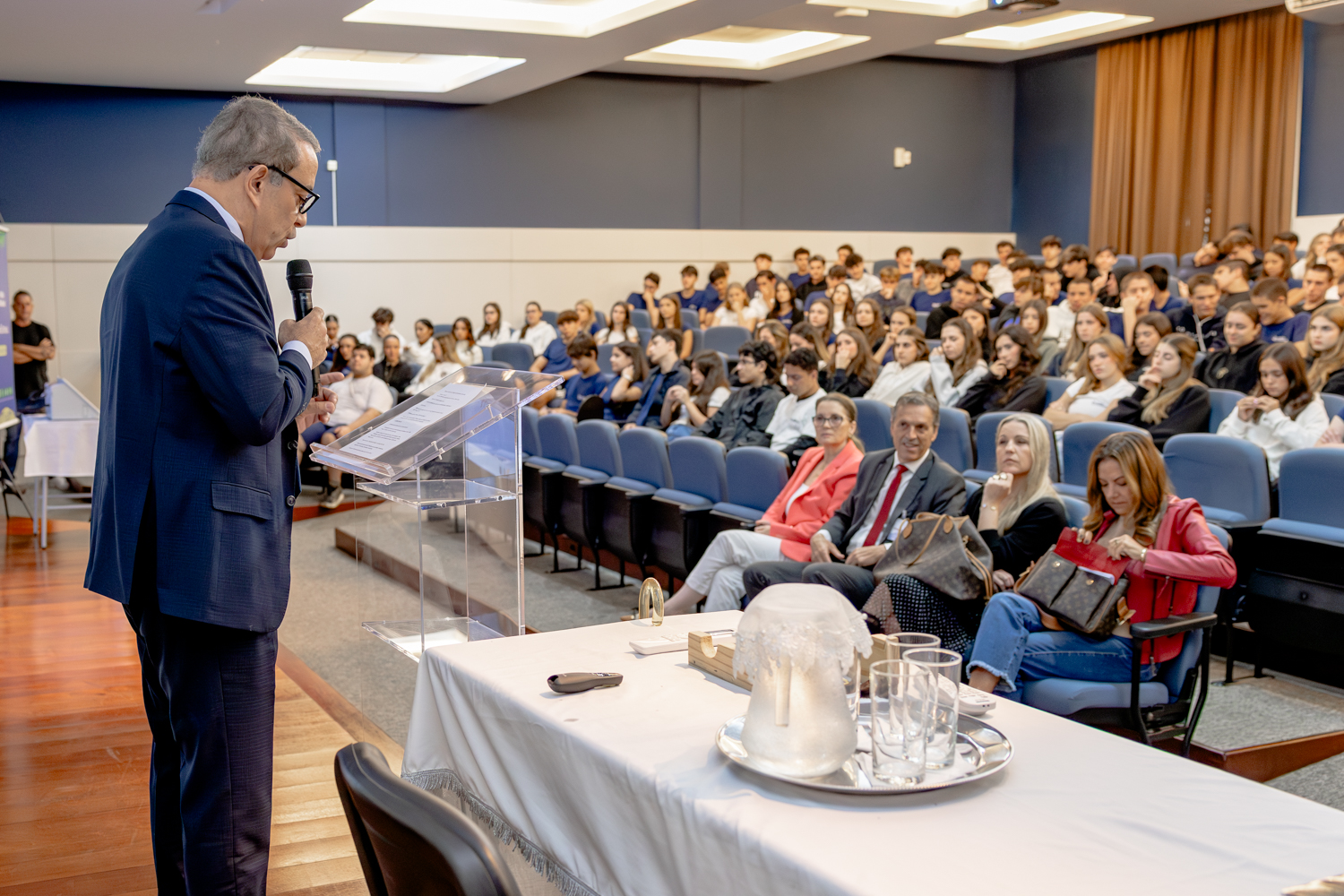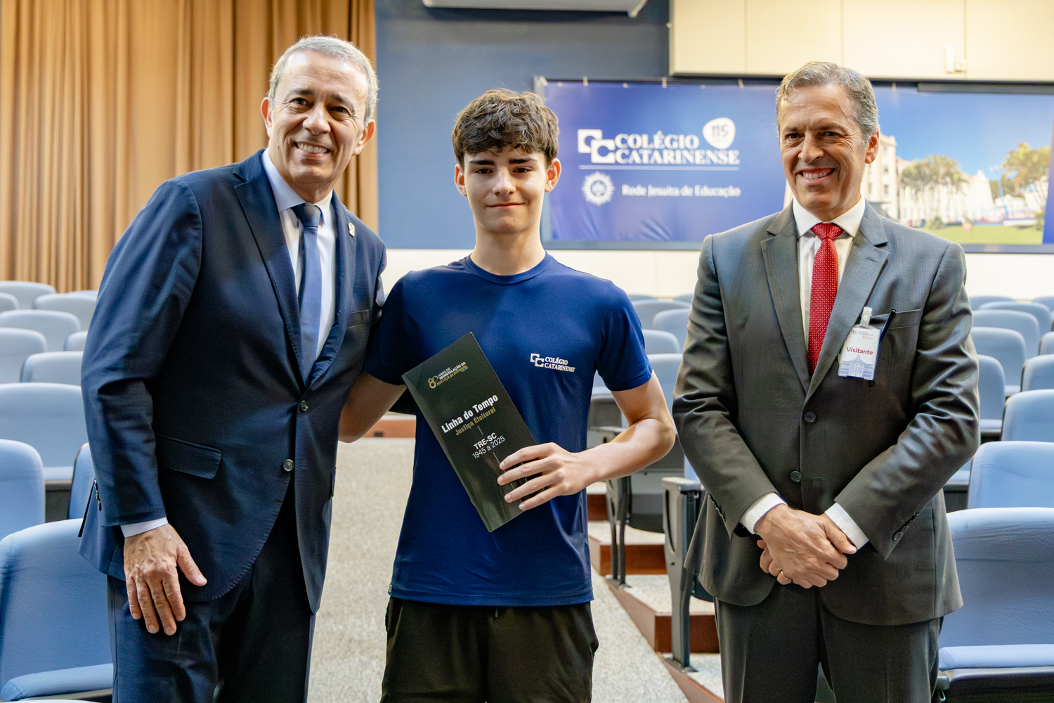 O Colégio Catarinense recebeu, nesta segunda-feira, dia 6 de abril, o presidente do Tribunal Regional Eleitoral de Santa Catarina (TRE-SC), desembargador Carlos Roberto da Silva, para um encontro com aproximadamente 160 estudantes da 2ª série do Ensino Médio. O encontro reuniu cerca de 160 alunos no Auditório João Paulo II e integrou as iniciativas formativas da escola voltadas à educação para a cidadania e à participação consciente na vida pública.