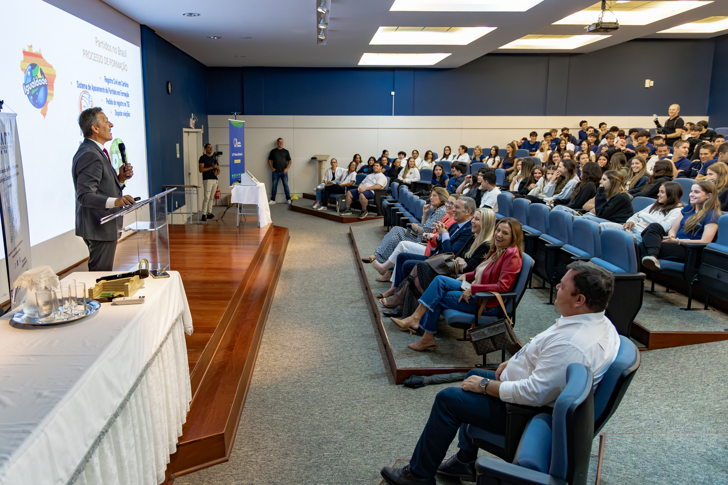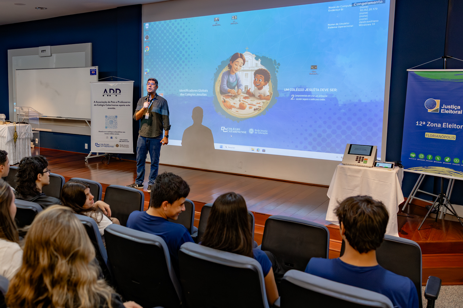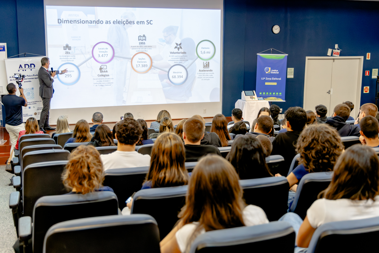 A atividade foi organizada pela juíza eleitoral Janine Stiehler Martins, da 12ª Zona Eleitoral de Florianópolis, com apoio da diretora acadêmica do Colégio Catarinense, Louisa Carla Farina Schröter, e da Associação de Pais e Professores (APP).
