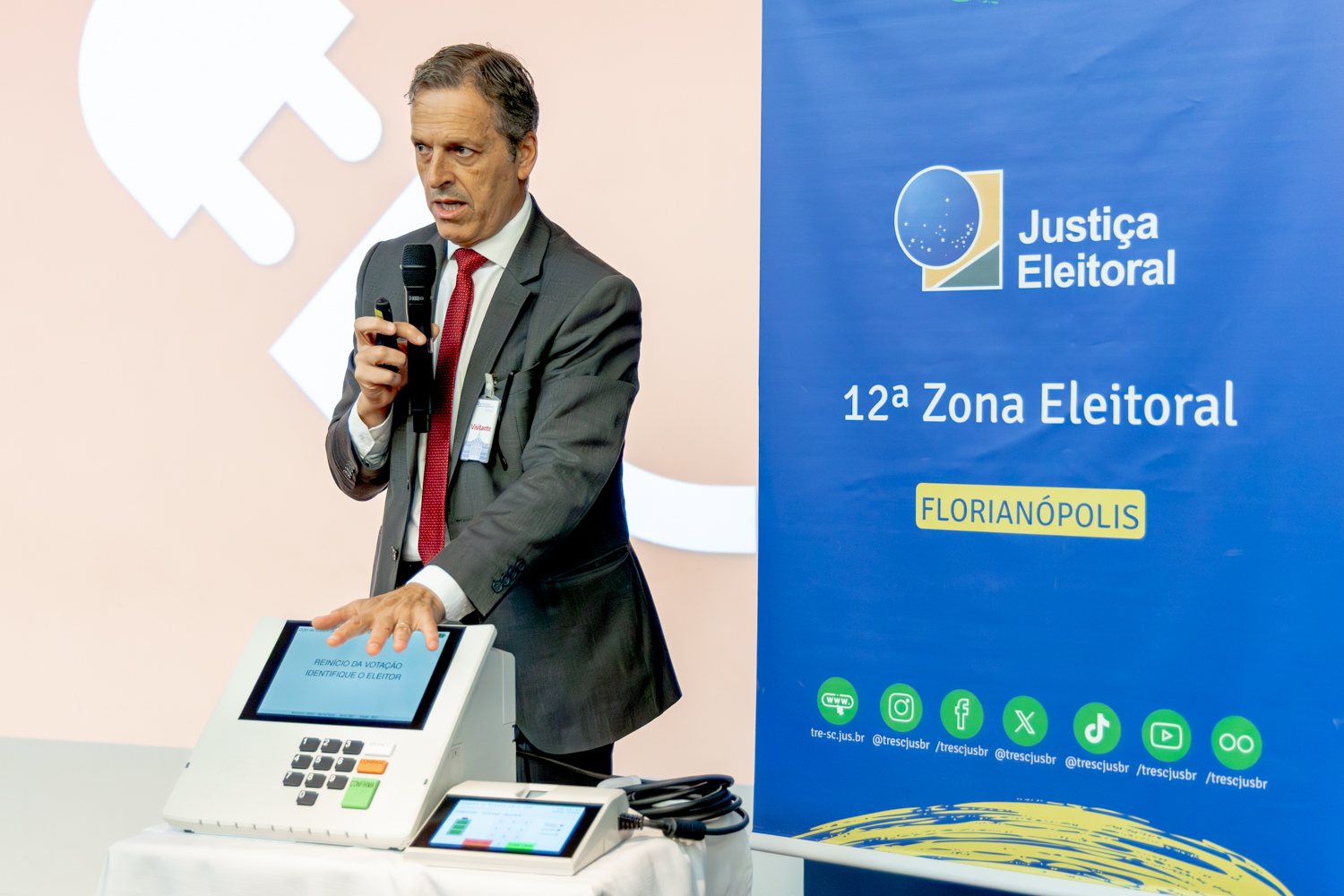 O encontro também contou com a participação do diretor-geral do TRE-SC, Gonsalo Agostini Ribeiro, que apresentou aos estudantes o funcionamento da Justiça Eleitoral e os principais aspectos do sistema de votação brasileiro. Entre os temas abordados, estiveram a segurança da urna eletrônica, os mecanismos de criptografia e o processo de auditoria, incluindo a demonstração da zerézima — documento que comprova que a urna não recebeu votos antes do início da votação.