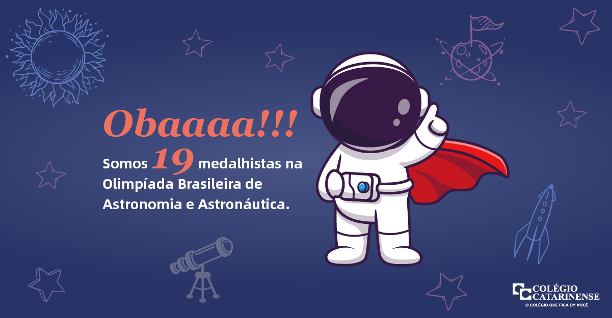 Dezenove alunos do Colégio foram medalhistas nas provas da Olimpíada Brasileira de Astronomia e Astronáutica (OBA), edição 2021. O evento, realizado pela Sociedade Astronômica Brasileira em parceria com a Agência Espacial Brasileira, conta com participantes do Ensino Fundamental II (1º ao 9º ano) ao Ensino Médio, em todo o território nacional.