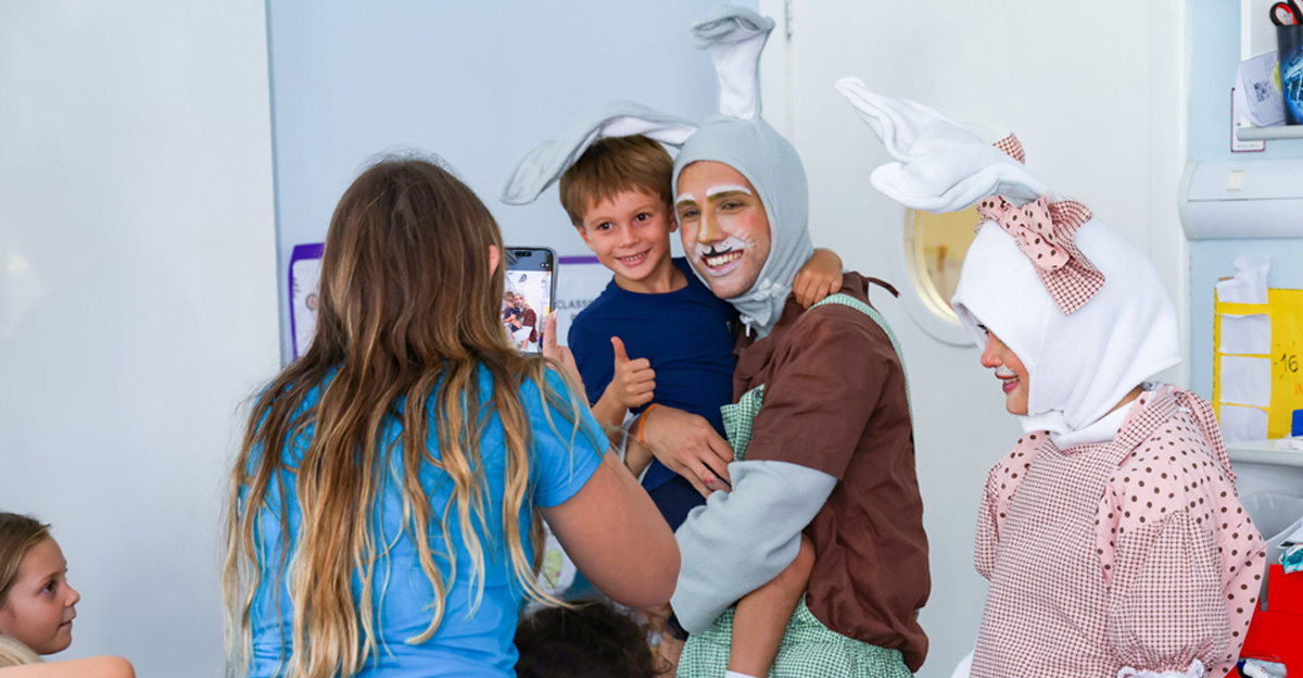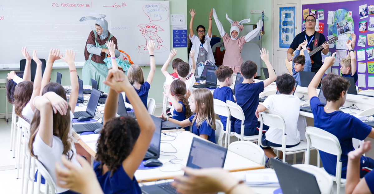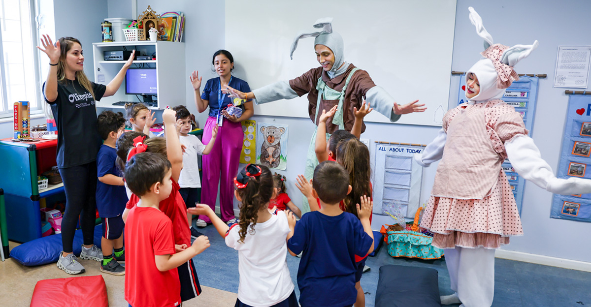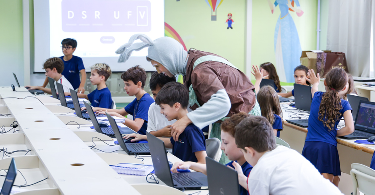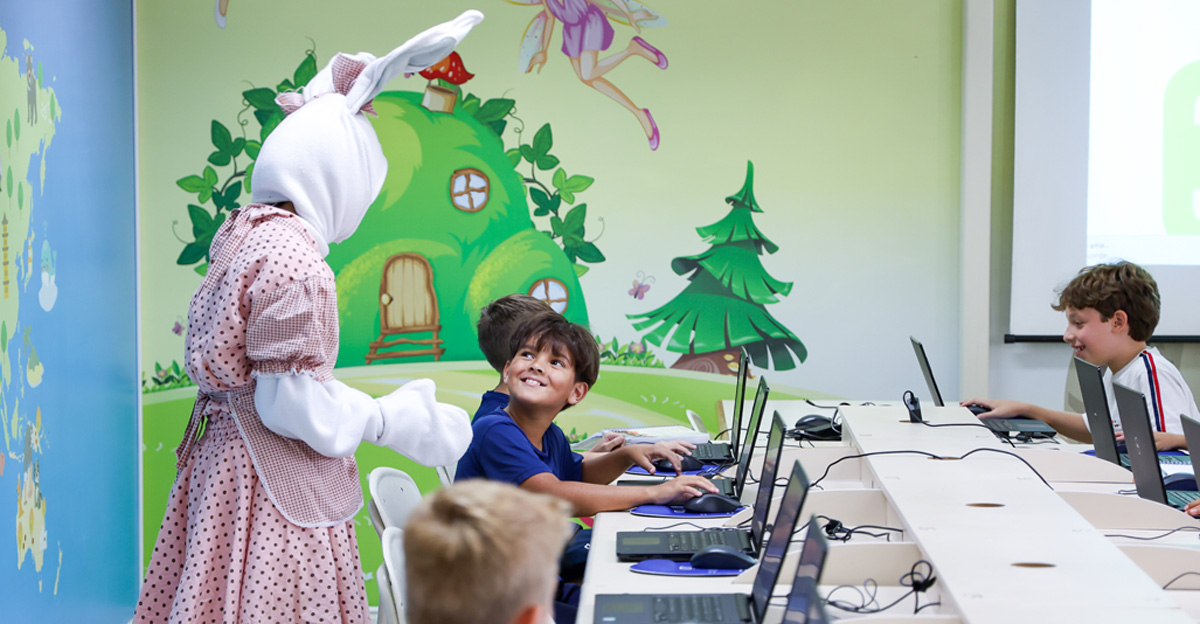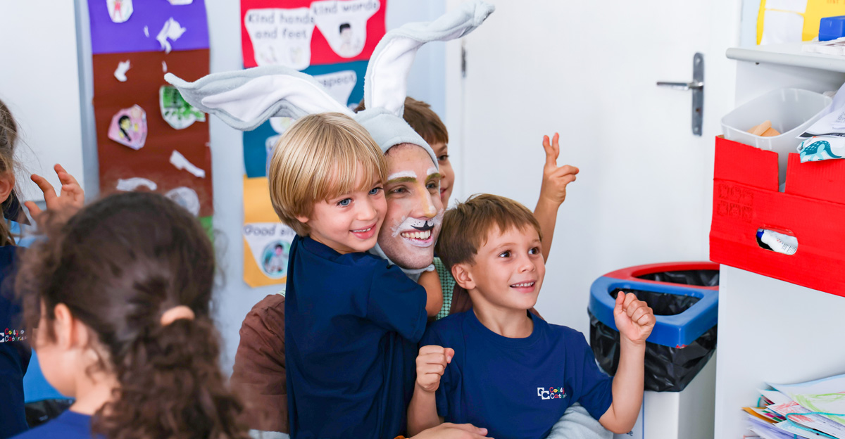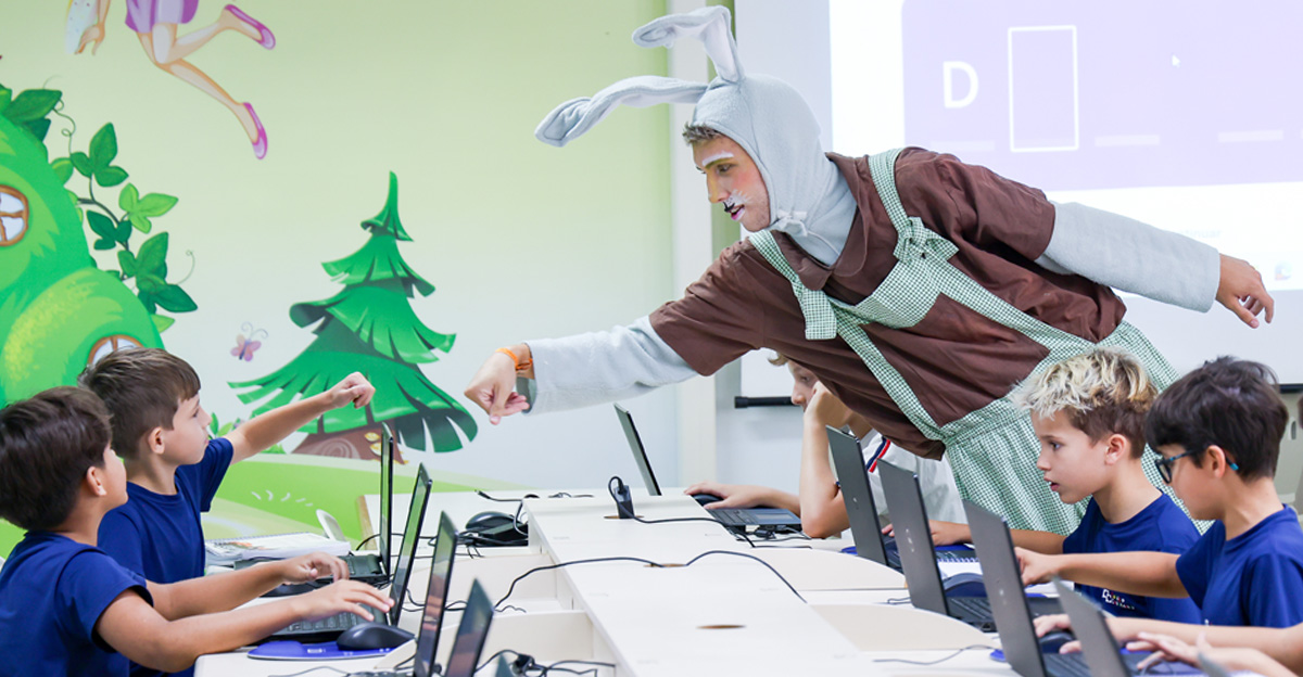 A programação seguiu com a visita do coelhinho e da coelhinha da Páscoa, que percorreram as salas da Educação Infantil ao 5º ano do Ensino Fundamental, promovendo momentos de interação, música e alegria, além de agradecerem todo o empenho dos alunos na campanha Páscoa Solidária, de arrecadação de caixa de bombons.